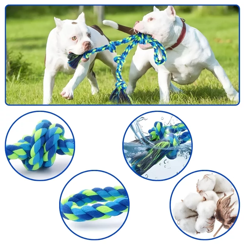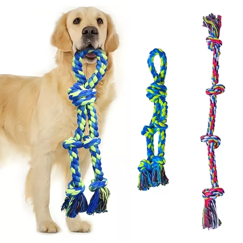 O modalitate atât de distractivă pentru terrierul meu să consume energie! Materialul pare sigur și îmi place că nodurile oferă noi zone de ros.