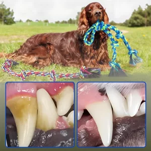 Cățelușul meu adoră să se joace de-a trasul cu această frânghie de ros. Îl ține ocupat ore întregi și am observat că dinții lui sunt mult mai curați acum.