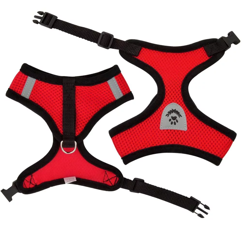 Ham-ul este proiectat să fie excepțional de confortabil și sigur pentru câinele tău, fără a-i limita libertatea de mișcare. Este ușor de purtat și ușor de pus și scos. Dispune de o deschidere confortabilă la gât și o curea reglabilă cu eliberare rapidă și inel D pentru atașarea lesei. Designul tip vestă distribuie presiunea lesei uniform pe pieptul și umerii animalului pentru a preveni tensiunea sau disconfortul la nivelul gâtului. Țesătura ușoară din plasă este durabilă. Rămâne moale și foarte respirabilă atât la temperaturi scăzute, cât și ridicate — perfectă pentru plimbări lungi în parc. Lesa din nylon vine bonus împreună cu hamul.