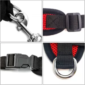 ✔️ UȘOR DE PURTAT ȘI PUS/SCOS — Realizat cu un stil ușor de introdus. Dispune de o curea reglabilă cu eliberare rapidă și inel D pentru atașarea lesei.