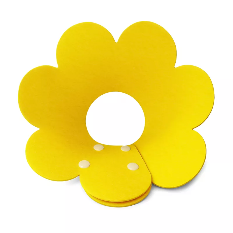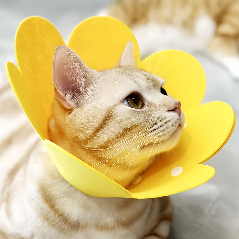 Forma de floare colorată face ca pisicile să arate adorabil și elegant. Stăpânii se bucură să-și vadă animalele de companie vesele chiar și pe perioada vindecării.