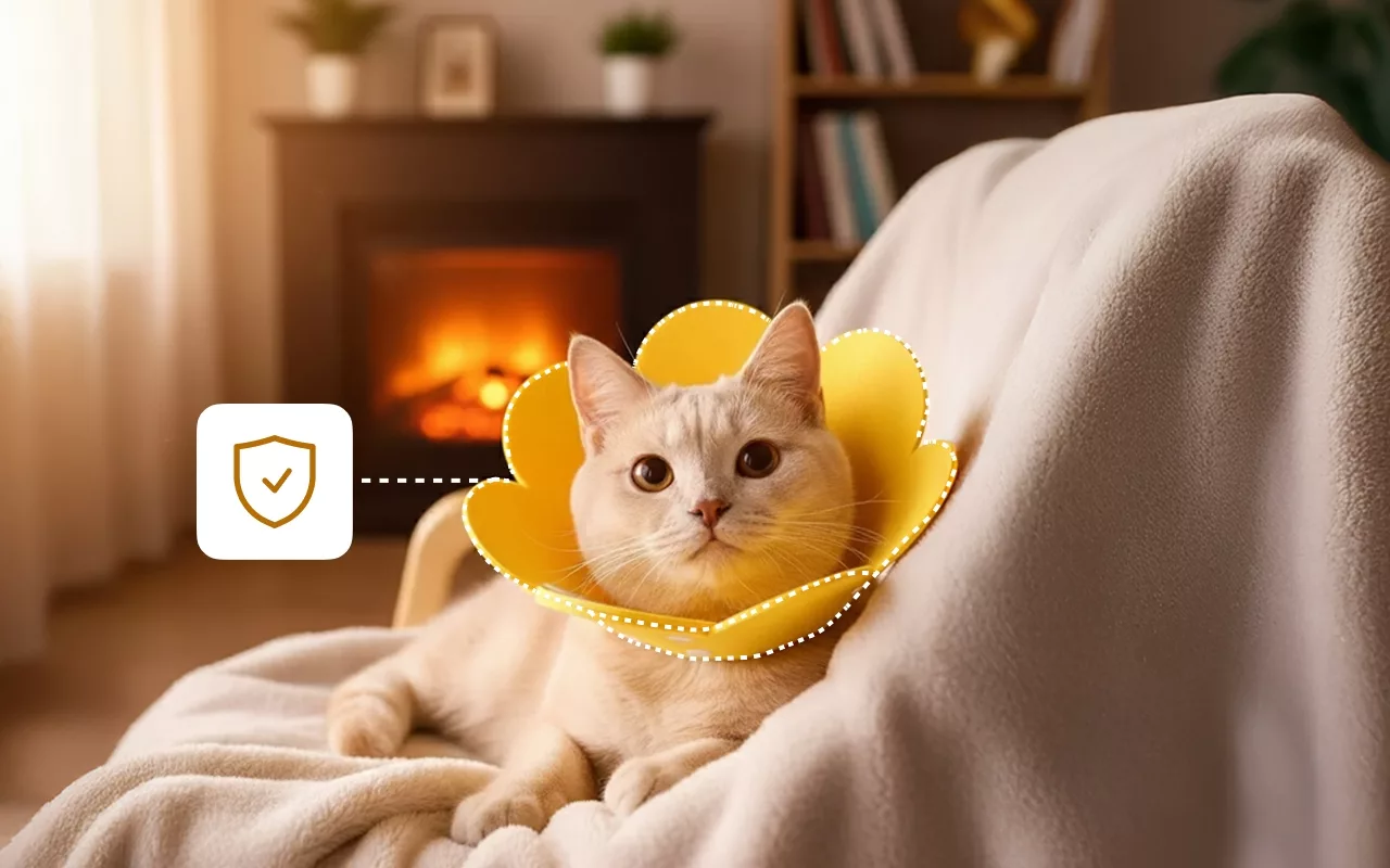 Împiedică animalele să lingă sau să muște zonele sensibile aflate în vindecare. Timpul de recuperare se reduce deoarece rănile rămân curate și în siguranță.