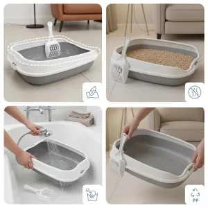 19 recenzii pentru Litieră pentru pisici cu margini înalte și lopățică