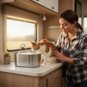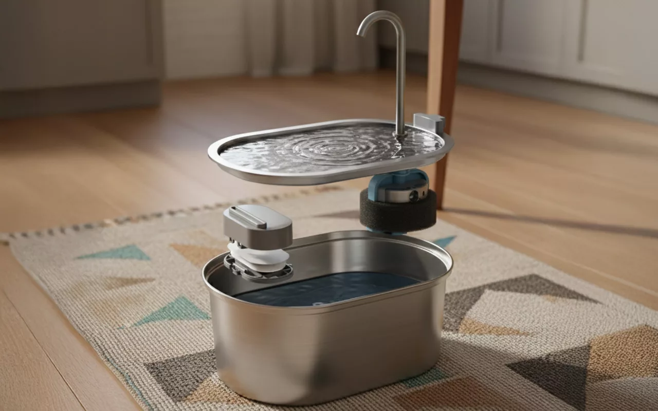 Fântână din oțel inoxidabil pentru pisici – Vas și distribuitor de apă cu filtru