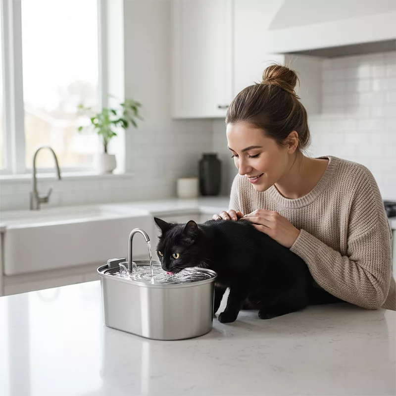 Îmi place mult cât de rapid pot să spăl fântâna. Pisica mea timidă o folosește des și pare mai puțin stresată acum. Inoxul arată bine în bucătărie.