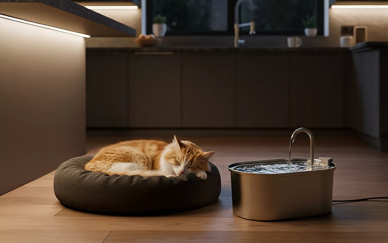 Pisoiul meu se speria de zgomotele puternice, dar această fântână e super silențioasă. Spălatul manual sau la mașină de vase funcționează la fel de bine și pot să mă bucur de liniște acasă.