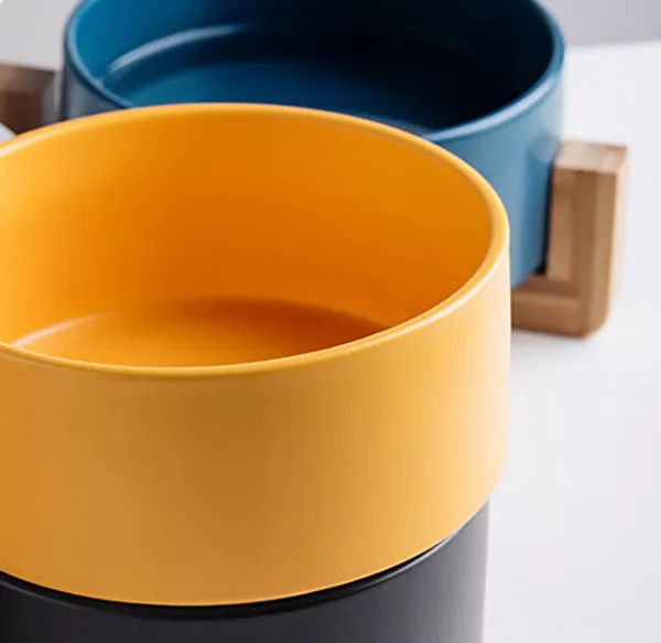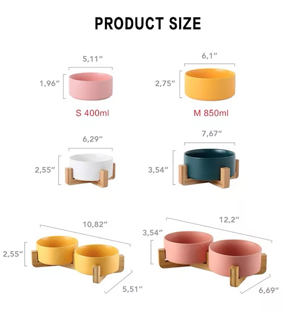 Bolul și suportul sunt realizate din material ceramic și bambus ecologic, sigur pentru alimente și durabil, foarte ușor de curățat. Disponibil în diverse opțiuni plăcute de culoare mată: alb, verde, gri, galben și roz. Aceste boluri sunt atât de luminoase și clare la culoare încât le puteți observa rapid chiar dacă câinele dvs. le ascunde.