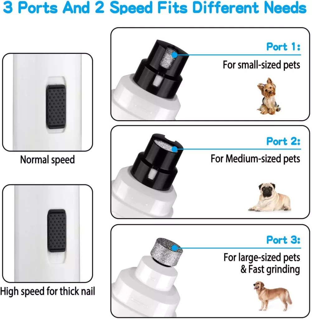 ✔️ POTRIVIT PENTRU TOATE MĂRIMILE DE ANIMALE DE COMPANIE — Există 3 porturi pentru animale mici, medii sau mari. Alege pur și simplu portul și viteza potrivite în funcție de mărimea și duritatea unghiilor animalului tău.