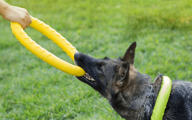 Câinele se descurcă bine la adus și la tras de inel. Foarte bine realizat. Recomand.