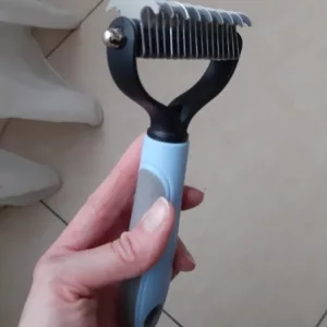 Îmi place foarte mult acest instrument pentru descurcarea și îndepărtarea părului mort. Funcționează foarte bine pe câinele meu. Și nu mi-a afectat încheietura mâinii, care este sensibilă, când l-am folosit. Este foarte confortabil.