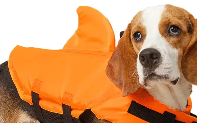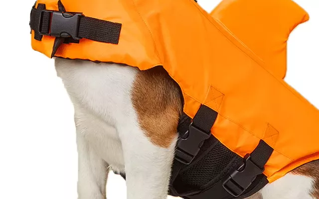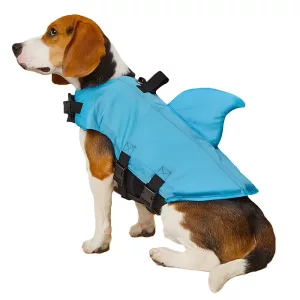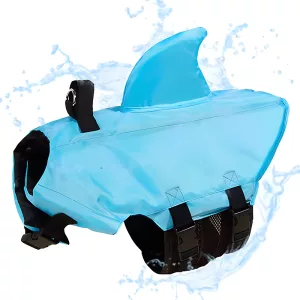 Cățelușul nostru adoră vesta cu rechin! Se potrivește perfect, îl menține la suprafață când înoată, iar înotătoarea îl face să arate adorabil. Foarte ușor de pus, de asemenea.