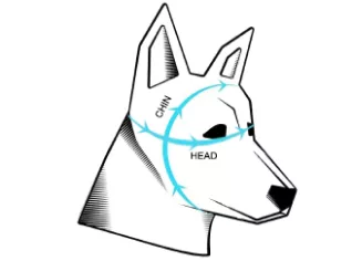 - Înfășurați ruleta de măsurat în jurul capului câinelui, orizontal, de jur împrejurul ochilor.