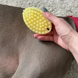 Îmi place această perie de baie. Este ușor de ținut când este udă și delicată cu blana câinelui meu. Aș recomanda cu căldură acest produs.