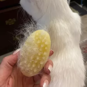 Această periuță mică funcționează excelent pentru a crea o spumă bună pe blana câinelui meu. M-a ajutat să ajung cu adevărat în profunzime și să fac o frecare plăcută. De asemenea, am observat că a ajutat câinele meu să se desfacă de păr. Cu siguranță aș recomanda să o încercați.