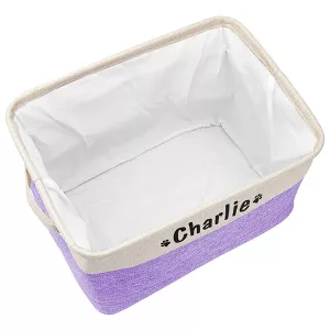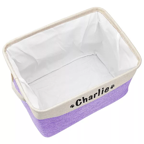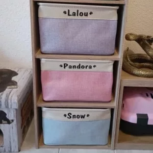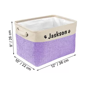 Organizează lucrurile câinelui tău cu coșul nostru robust și elegant de depozitare. Te va ajuta să eliberezi spațiu și să menții ordinea în casă. Având numele animalului tău pe coș îl va face cu adevărat unic.