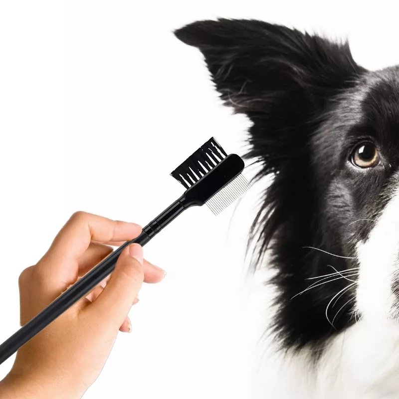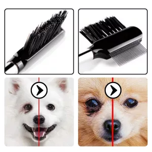 Acest instrument îndeplinește două sarcini: descurcă blana animalului tău de companie din jurul ochilor și îndepărtează petele de lacrimi.