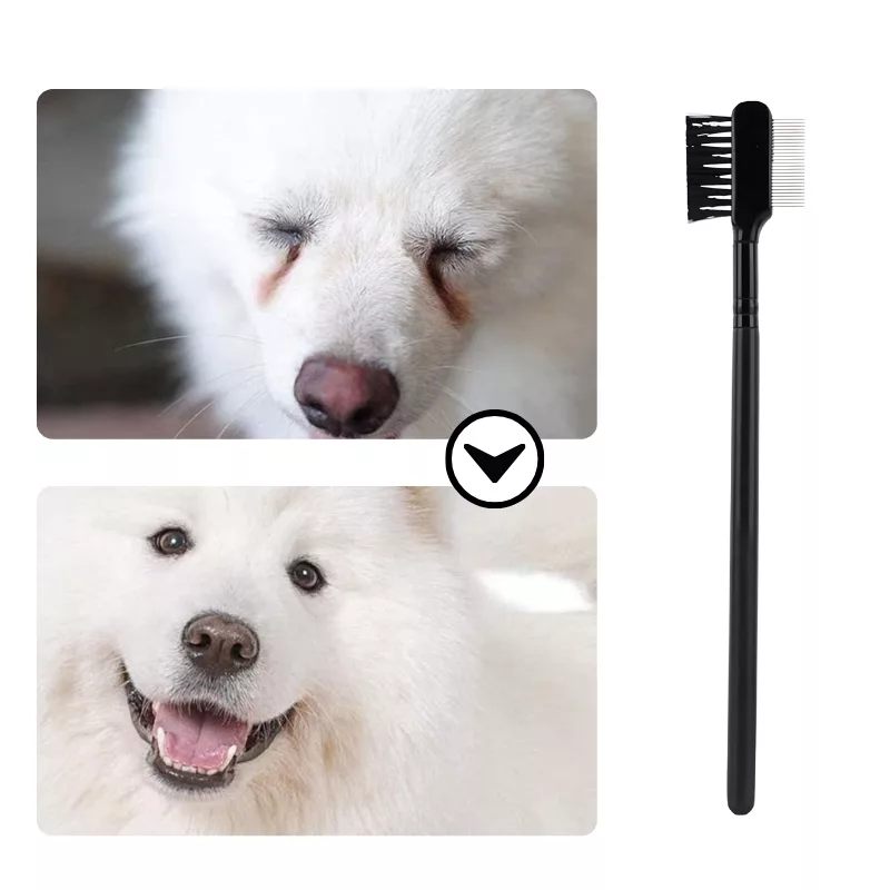 Acest pieptene pentru ochi este revoluționar pentru terrierul meu mic! Nu mai are crustă galbenă pe față și arată mereu luminat la ochi.