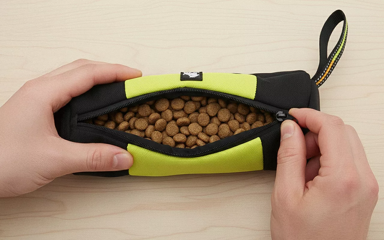 Deschide rapid fermoarul pentru a lua recompensele când ai nevoie. Animalul tău nu așteaptă niciodată, așa că antrenamentul rămâne eficient și distractiv.