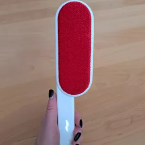 Funcționează bine, dar țesătura roșie de pe perie poate arăta murdărie ușor. Cu toate acestea, rămâne un obiect indispensabil pentru proprietarii de animale de companie.