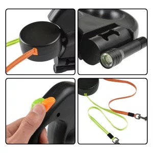 Observă-ți animalul chiar și în cele mai întunecate colțuri ale parcului! Această lesă are lanterna inclusă, sporindu-i vizibilitatea în plimbările de seară.