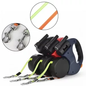 Această lesă dublă pentru câini se poate roti liber, prevenind încurcarea. Îți oferă mai mult control și permite animalelor să se miște mai liber.