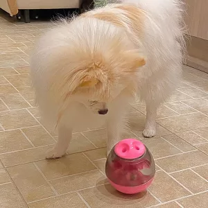 Cățelușa mea adoră absolut această minge! La început nu înțelegea ce se întâmplă, dar apoi nu s-a mai putut opri din joacă! O ține bine ocupată.