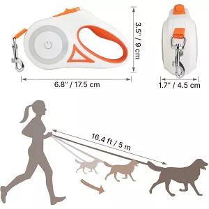 Această lesă retractabilă pentru câini are funcții ușor de utilizat, cum ar fi butonul de blocare. De asemenea, are o lumină de noapte pe laterale pentru o siguranță sporită când te afli în întuneric. Recomand acest produs.