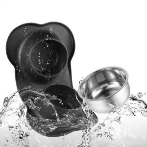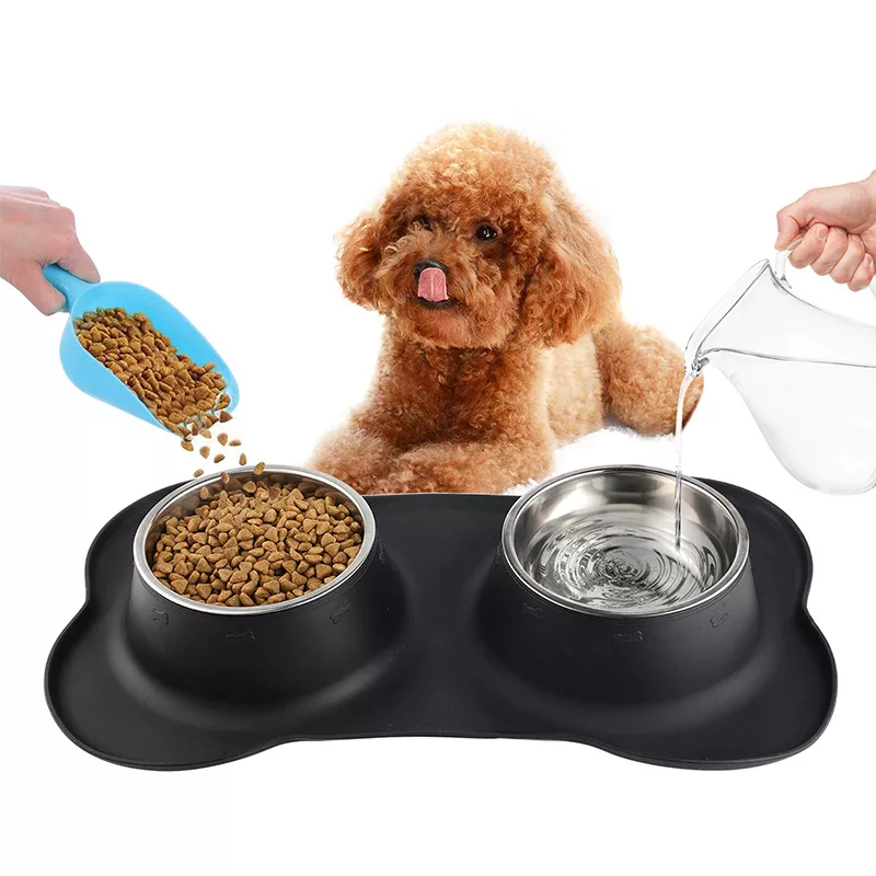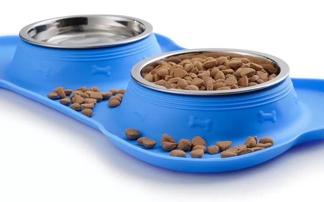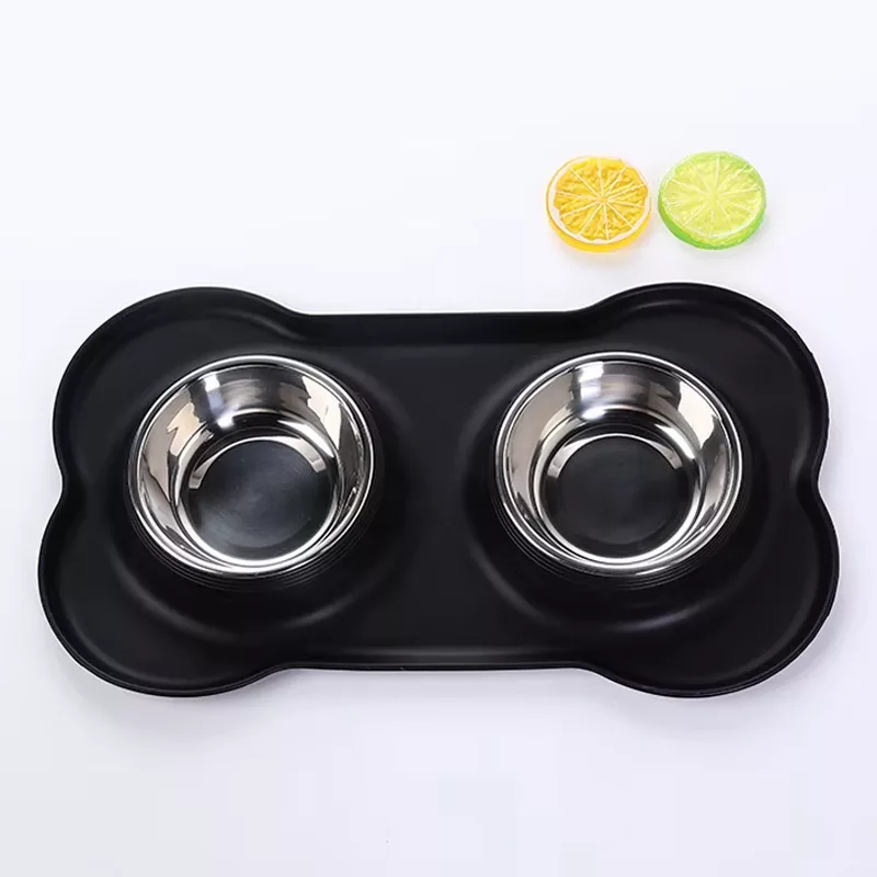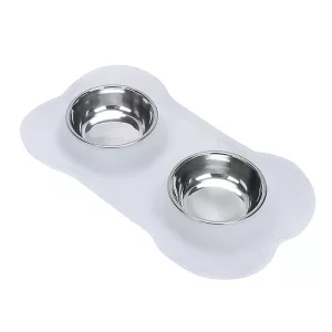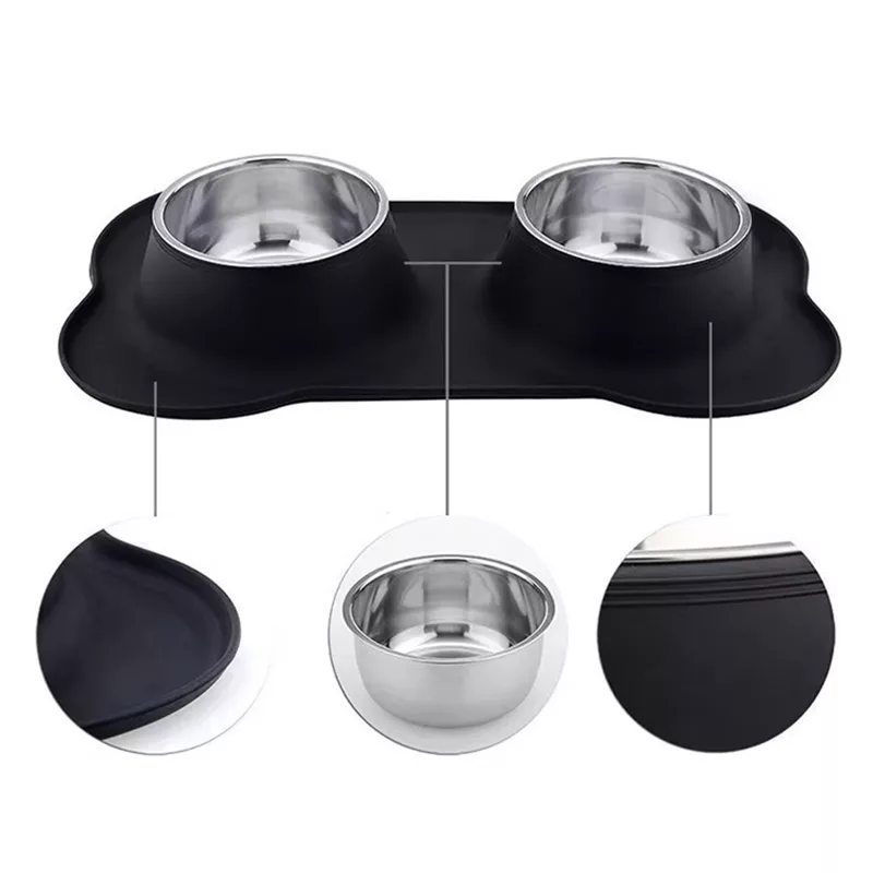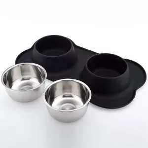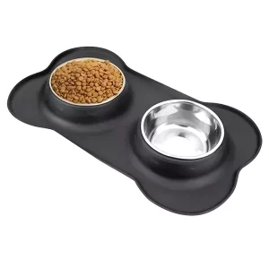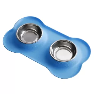 Bol dublu antiderapant pentru câini cu covoraș din silicon