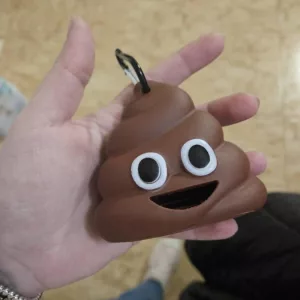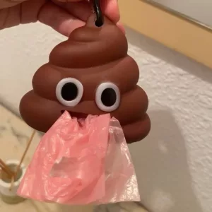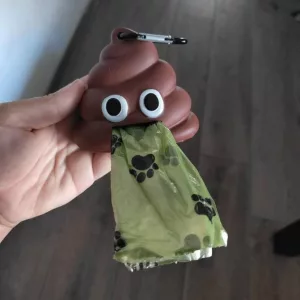 Acest distribuitor este compact și se agață ordonat de lesă, fără a fi deranjant. Pungile ies ușor. Designul cu emoji-ul de caca este amuzant și stârnește multe râsete. L-aș cumpăra din nou.