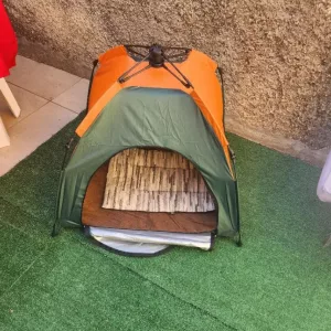 Câinele meu iubește noul său cort portabil. Se montează foarte rapid. Îl pot păstra în mașină pentru deplasări rapide. Materialul este confortabil.