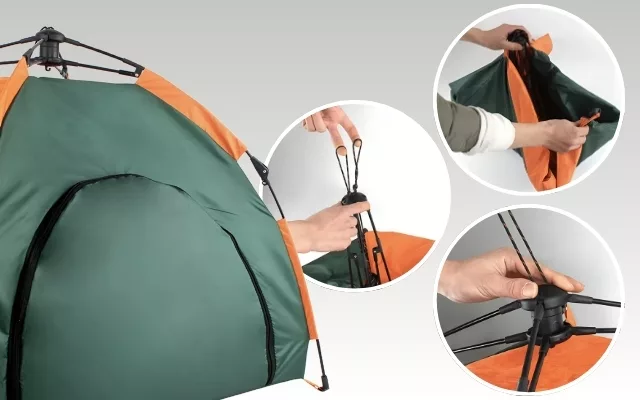 Adăpostul se deschide instantaneu, economisind timp în zilele aglomerate petrecute afară. Nu sunt necesare unelte, asigurând o asamblare fără bătăi de cap.