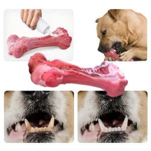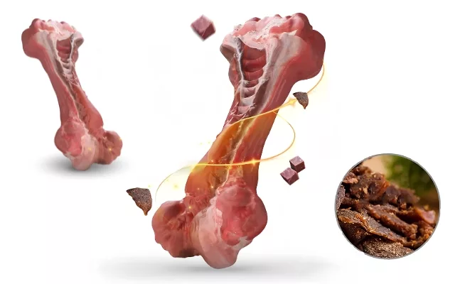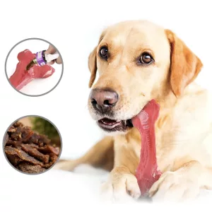 Infuzată cu aromă de carne, această jucărie de ros este irezistibilă pentru câini. Este ca o recompensă, dar fără calorii în plus.