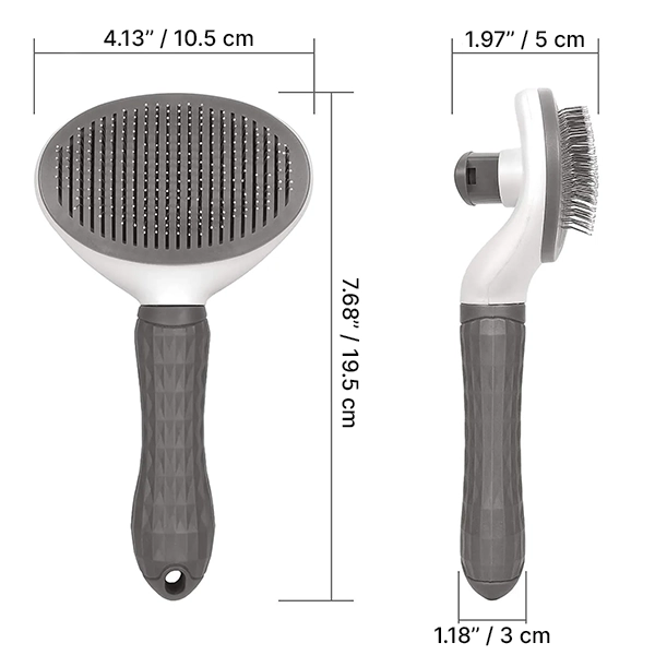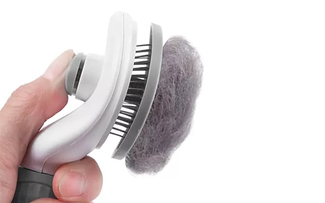 Deși această perie este destul de mare pentru cățelușul meu mai mic, face o treabă foarte bună în a îndepărta o parte din părul de subblană. Îmi place că poți apăsa butonul pentru a ejecta părul.