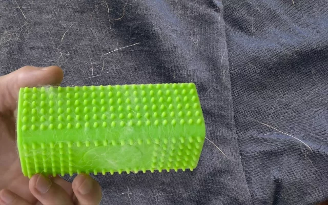 La început am fost sceptic, dar această perie funcționează excelent. Este perfectă pentru a masa blana câinelui meu, lucru pe care îl adoră. De asemenea, este foarte eficientă în îndepărtarea firelor de păr desprinse.