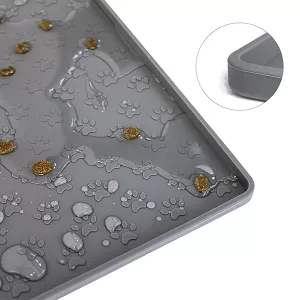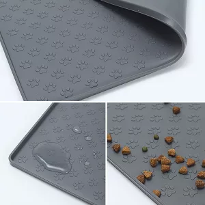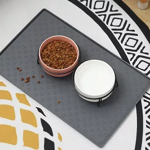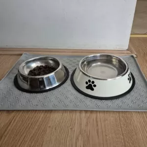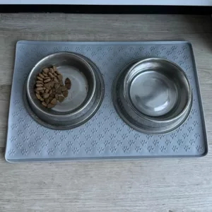 Plasament pentru animale de companie de înaltă calitate, elegant! Are un model drăguț, texturat cu amprente de lăbuțe pentru a oferi bolurilor o aderență suplimentară. Recomandat!
