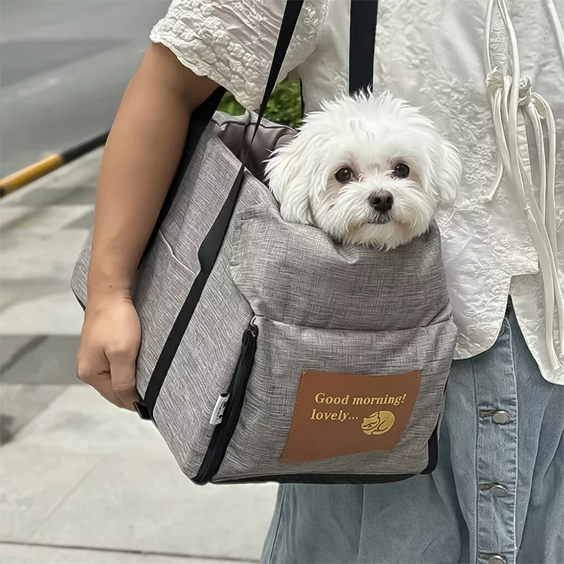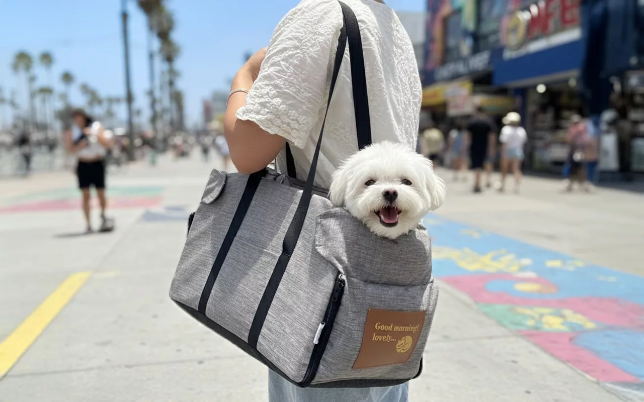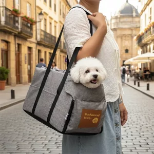 Îmi place să îmi iau cățelul peste tot. Mânerele sunt rezistente și confortabile, iar geanta rămâne curată și după spălări rapide.