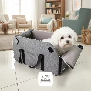 O folosim în fiecare weekend și câinele nostru stă liniștit mereu în ea. Căptușeala se scoate ușor și intră direct la spălat.