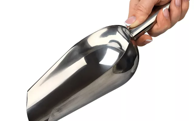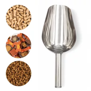 Mânerul său ergonomic asigură o prindere sigură, făcând ușoară dozarea hranei pentru animale.