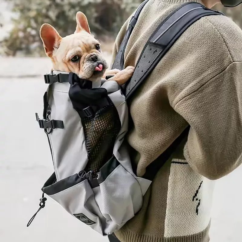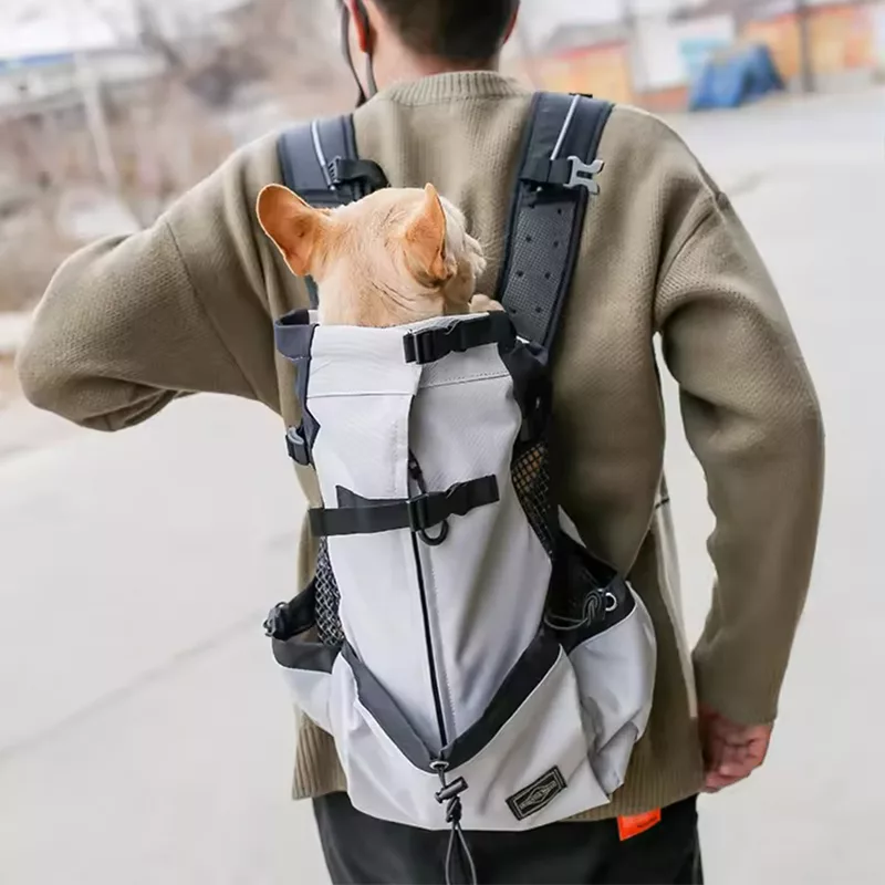 Sunt foarte mulțumit de acest rucsac! Câinele meu se potrivește perfect și buzunarele sunt ideale pentru a ține apă și gustări.