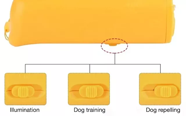 Comută între diferite setări în funcție de nevoile tale. Există moduri de iluminare, de dresaj de alungare a câinilor.