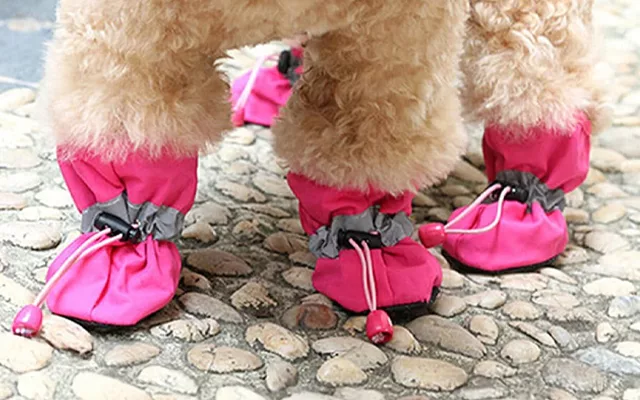 Bălțile nu vor mai fi o problemă cu aceste încălțări pentru câini. Sunt realizate dintr-un material rezistent la apă, păstrând lăbuțele animalului uscate pe timp de ploaie.