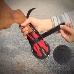 Beagle-ul meu a purtat aceste încălțări pentru câini pe trasee montane și i-au protejat cu adevărat lăbuțele. Benzile reflectorizante s-au remarcat și nu i-au căzut niciodată.
