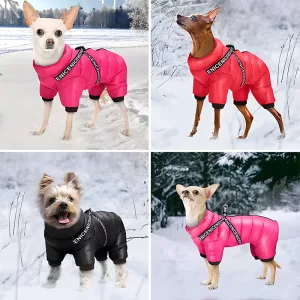 Geacă groasă de iarnă pentru câini cu ham inclus